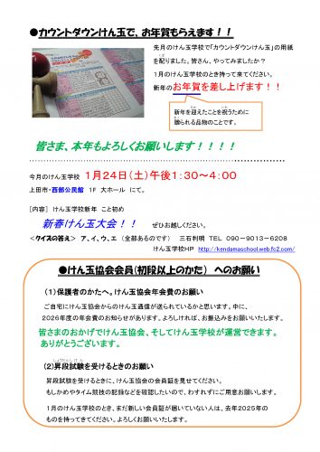 三石6段のけん玉通信2026年1月号を会員のみなさまにはメールさせていただきました。
