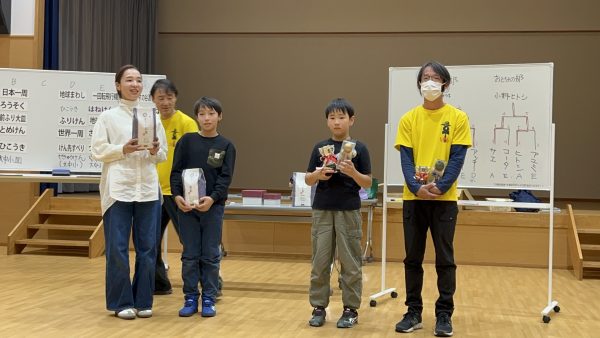 今回は三石校長が用意してくれたトロフィーと副賞(けん玉)のほかに・・・
